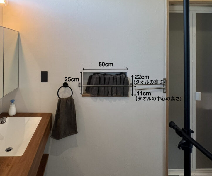 洗面所タオルニッチのサイズ。後悔ポイントもあり。